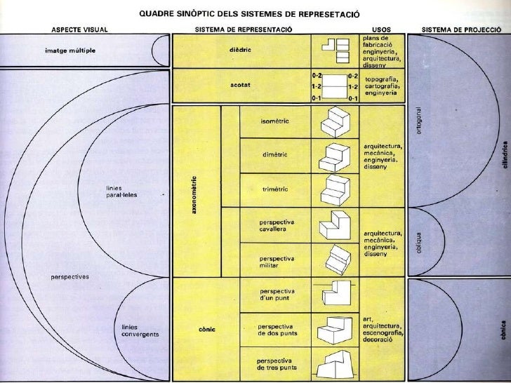 Els sistemes d’aquest tema a 4t -dièdric i axonomètric- encara que cadascú té una manera de representar els objectes, es complementen l’un amb l’altre, ja que per poder, per exemple, resoldre la visió d’una peça en dièdric, l’enunciat estarà en axonomètric i viceversa.